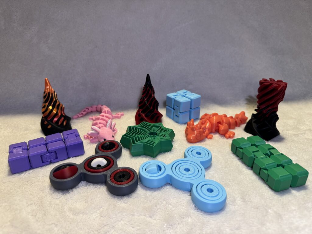 We offer a growing collection of high quality 3D printed creations, each carefully finished and hand-painted to bring out character, color, and detail. From unique home décor pieces and artistic display models to tabletop gaming accessories and collectibles, our prints are designed to stand out and spark conversation. We also carry fun, functional items like fidget toys and everyday gadgets, making it easy to find something both creative and practical. Whether you’re decorating a space, upgrading your game table, or just looking for something cool to gift or display, our handcrafted prints are made to be enjoyed. Below are some example pieces!